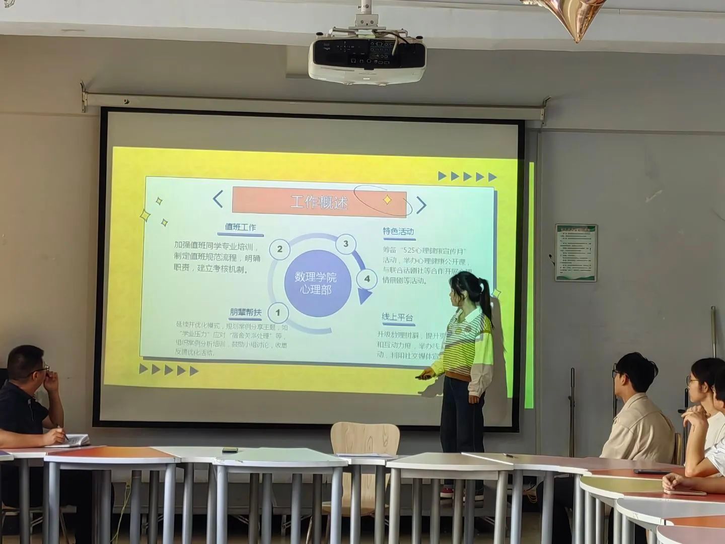 活动最后聚焦近期重点工作安排。由于随着学期推进,校园里活动丰富,同学们面临的压力也可能增多,心理中心的工作也愈发关键。