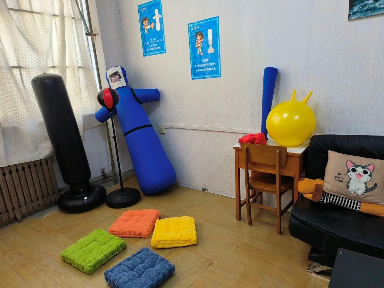 心理咨询室位于9号楼A栋410,总面积28平方米,环境舒适、整洁,并且配备沙盘、心理咨询书籍、情绪宣泄器材等心理咨询设备。通过开展讲座、谈心谈话、沙龙游戏、心理咨询培训、团队辅导等活动进行学生的心理辅导,为学生在学习、情感、社交、择业等方面进行排忧解难、心理疏通。