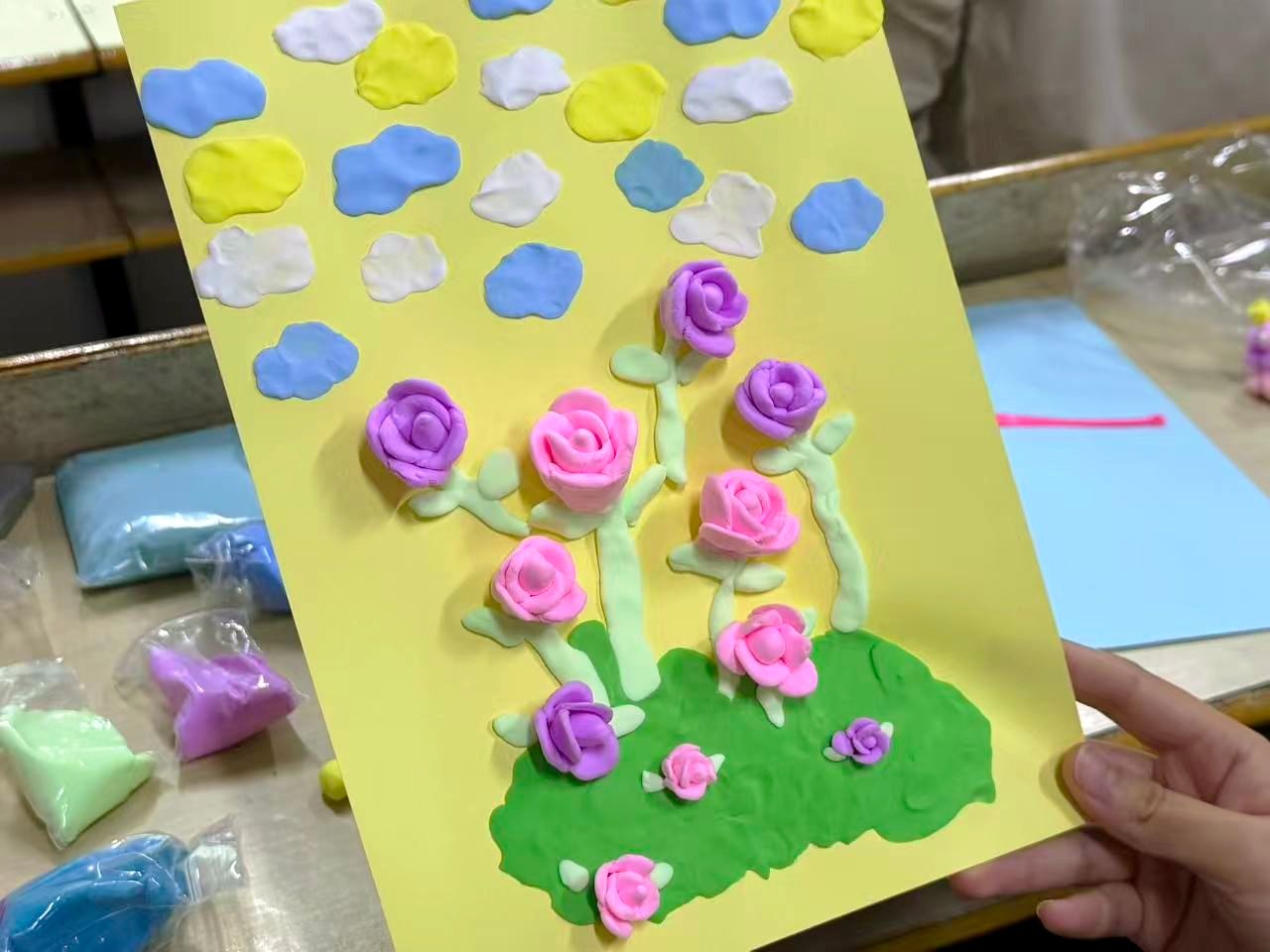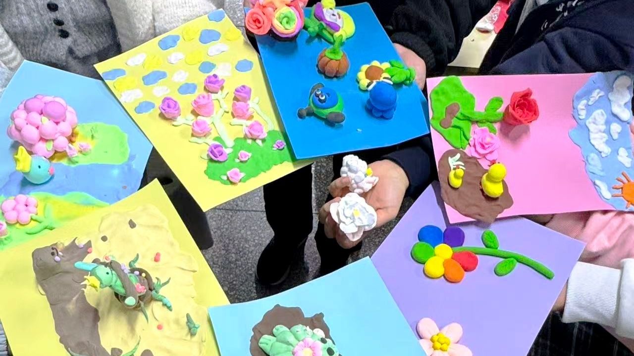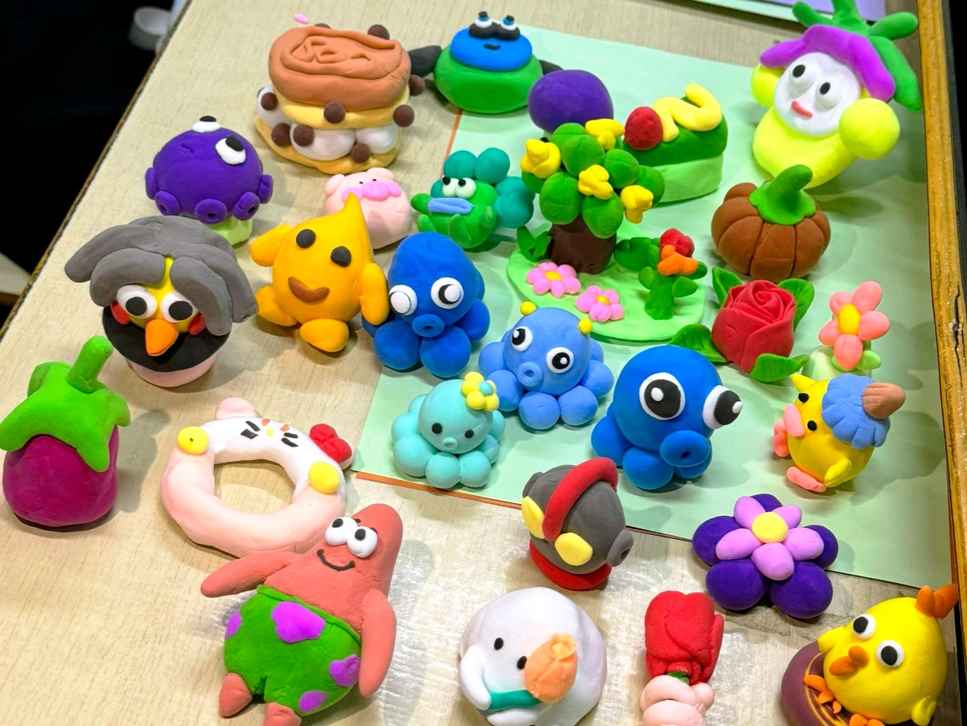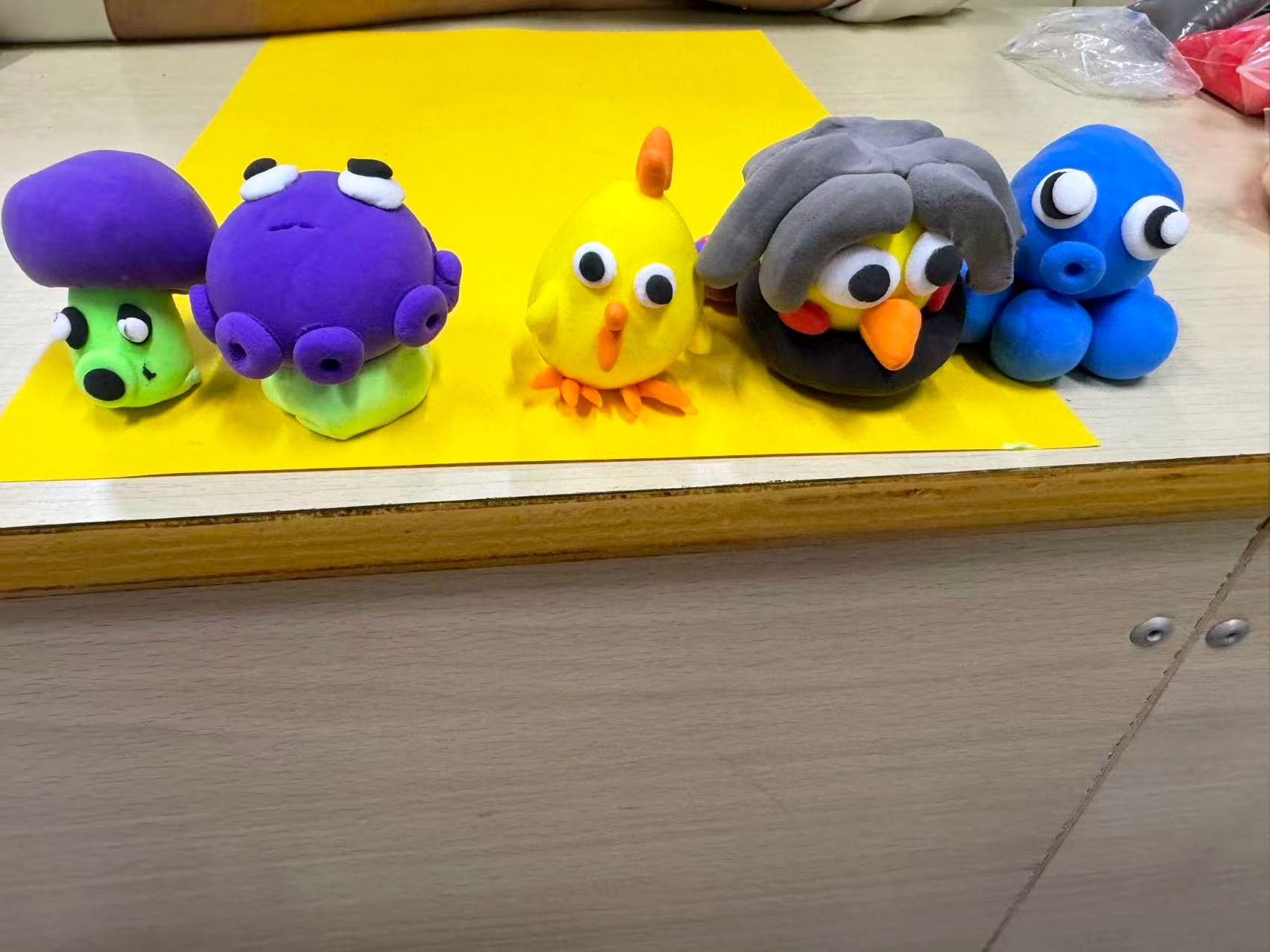 活动以“情绪疗愈+创意表达”为核心,设置“粘土植物、萌物创作”环节,同学们或单独挑战,或组队攻坚,以饱满的热情积极参与。活动中,同学们将内心情绪转化为造型各异的作品——既有拟人化的“笑脸仙人掌”、“治愈系小花丛”,也有充满童趣海绵宝宝、小企鹅等卡通形象,借由揉捏、塑形的过程释放负面情绪,以色彩与创意传递温暖共鸣。创作完成后,学生们展示作品并分享创作思路,将“坏情绪”以艺术方式“回收”,同时从他人的作品与分享中收获“暖鼓励”。
