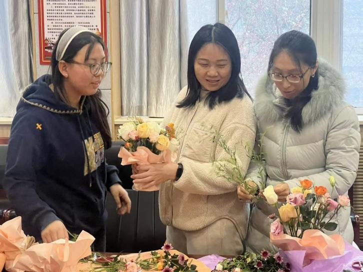 为增进师生情感联结,缓解身心压力,营造和谐温暖的校园氛围,时空信息工程学院于2026年3月在五号楼开展 “花漾师心,共赴春序” 师生插花活动,学院学生与教师共同参与,在花香与巧思中邂逅美好,以花艺为桥搭建起师生沟通的暖心纽带,打破课堂身份壁垒,让师生在轻松氛围中近距离交流。