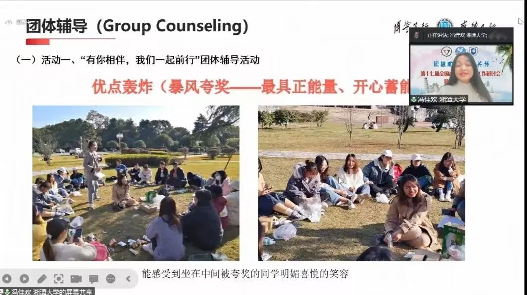 各班心理委员分享本学期工作中遇到的问题及经验,相互学习借鉴。号召各个心委要认真对待工作,在接下来的时间里,继续努力,为构建一个更加和谐的班集体做出自己的努力。心委间相互分享经验、指正错误,在接下来的工作中,一起把工作做到最好,让每位同学都拥有一个健康的心灵。