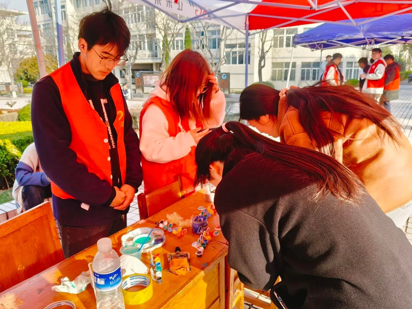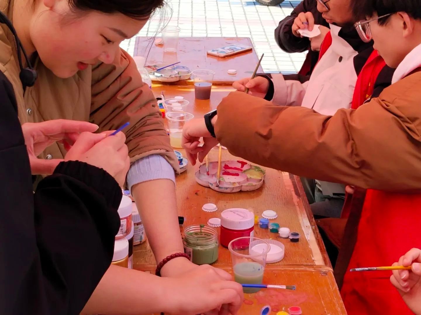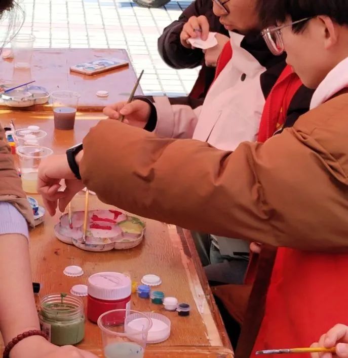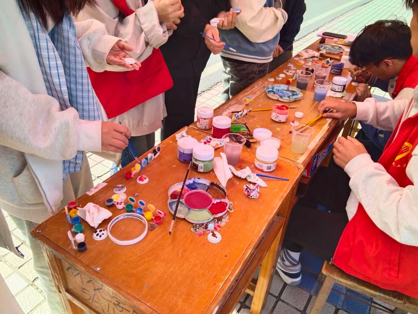 活动伊始,材料与化工学院心理部成员为大家提供收集的废弃瓶盖,放置好颜料与画笔,并为大家讲解活动参与方式。