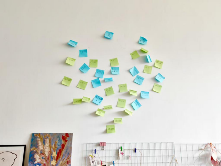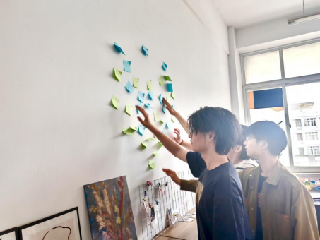 同学们纷纷走到背景板前,粘贴自己最近遇到的标签和想说的话,然后撕掉那些与自己有关的标签,或者撕掉那些他们觉得不应该贴在任何人身上的标签,这一过程象征着摆脱社会或自我施加的负面标签,释放内心的压力。