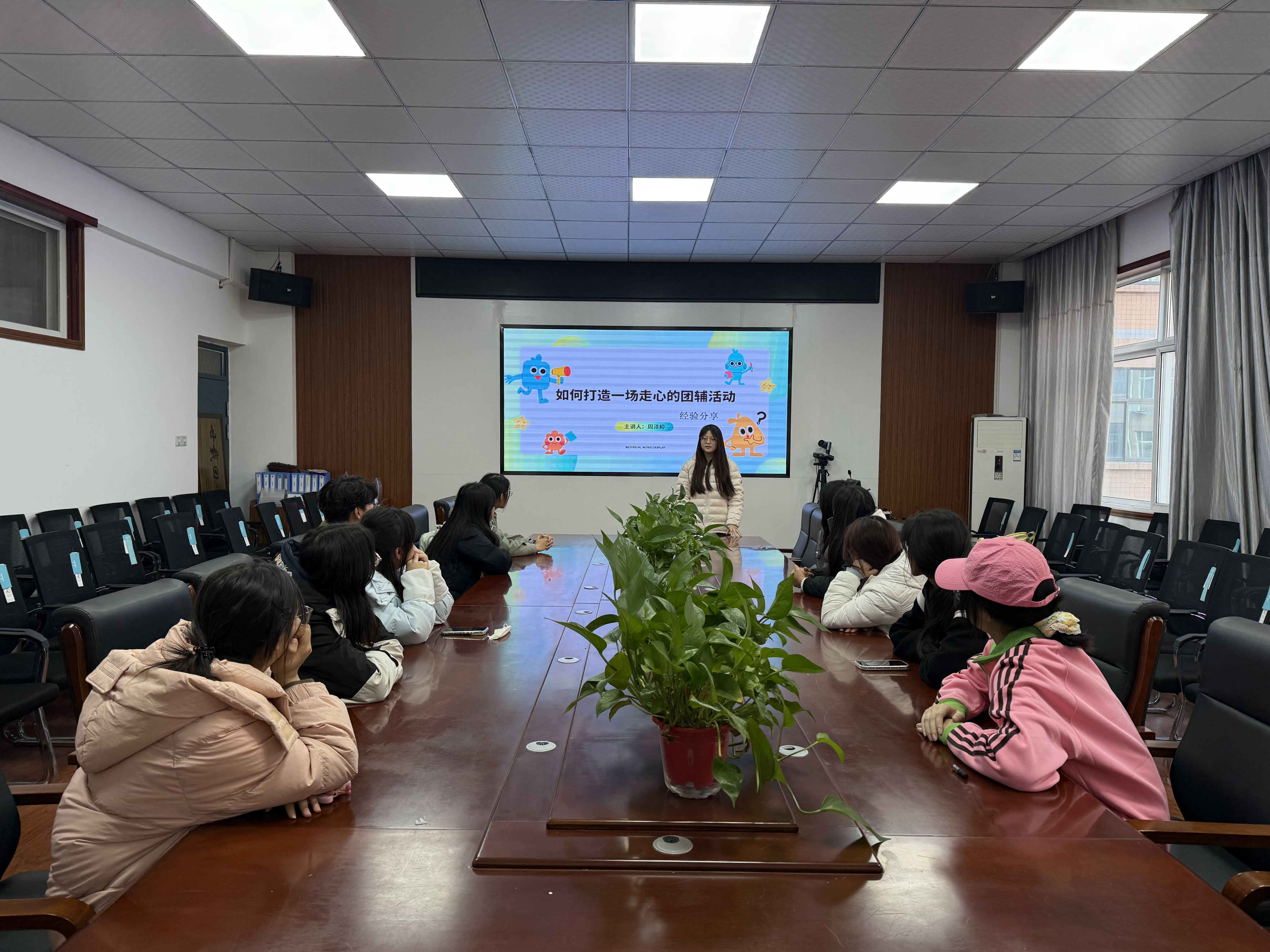 随后,学院心理部部长周泽婷同学以“如何打造一场走心的团辅活动”为主题从活动策划、流程设计、氛围营造、效果反馈等方面对团辅活动进行详细拆解,生动展示了团辅活动在提升班级凝聚力、提升人际交往能力中的重要作用。