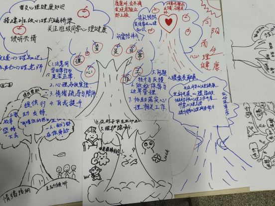 最具挑战性的“信任盲行”环节将气氛推向高潮,成员两两分组,一人蒙眼、一人引导,通过肢体语言协作穿越障碍。这一设计不仅考验沟通技巧,更让参与者切身体会到“倾听”与“信任”的重要性。“共创团队契约树”环节,各组用自然材料拼贴出象征团队价值观的“契约树”,承诺保密、尊重与支持,为后续合作奠定坚实基础。15分钟的静默徒步引导成员沉浸自然,通过观察细微之处联想到团队协作与心理支持的场景,激发共情力。随后的“情景应对‘能量站’”中,各组抽取校园心理常见问题案例,现场设计回应方案并模拟对话。